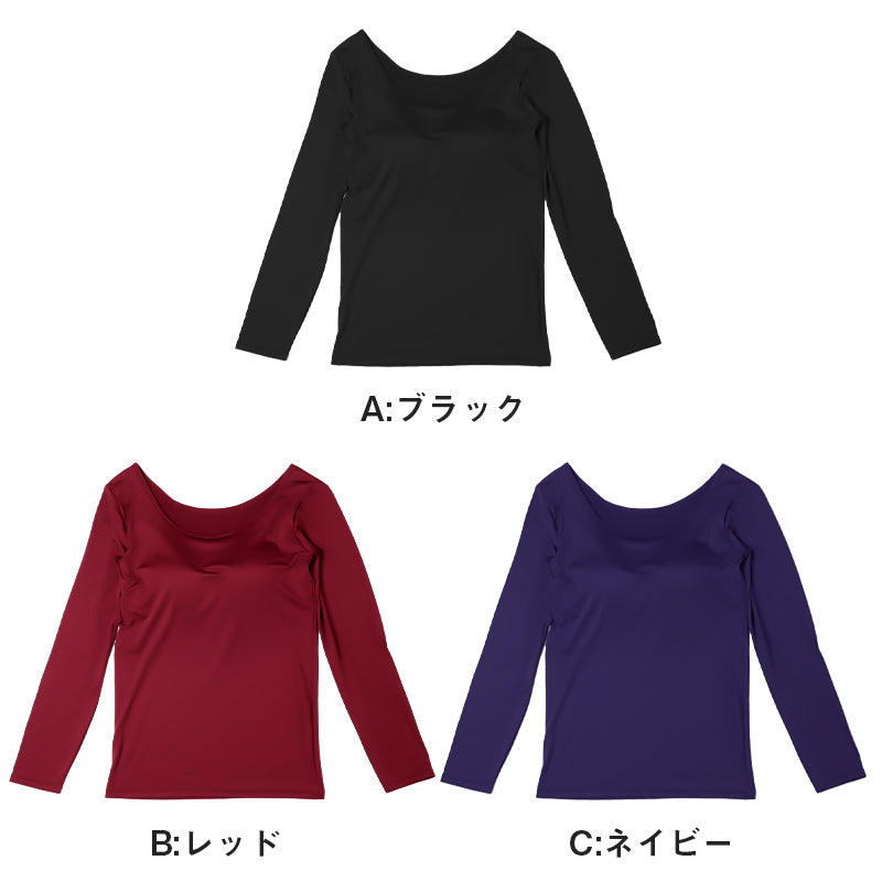 ホカロン 裏起毛 カップ付き 長袖 インナー 薄手 レディース 保温 あったかインナー シャツ 丸首 M L LL
