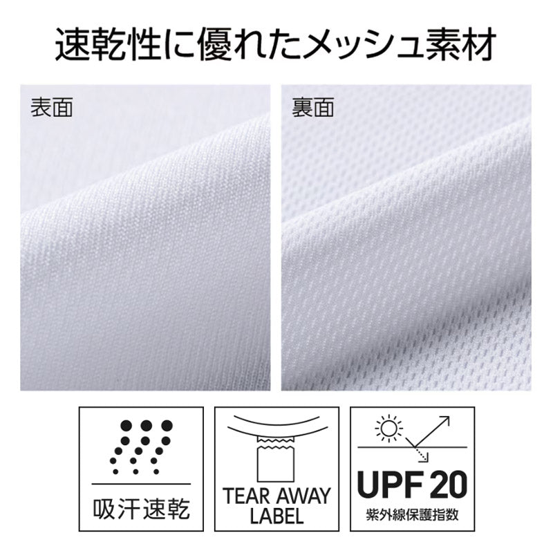 吸汗速乾 UPF20 紫外線対策 ドライメッシュ素材