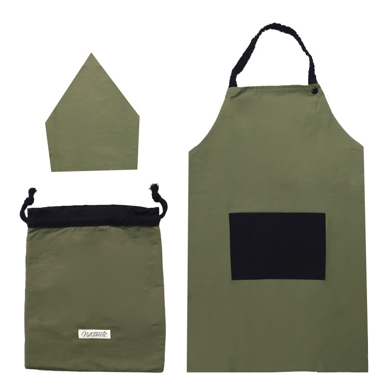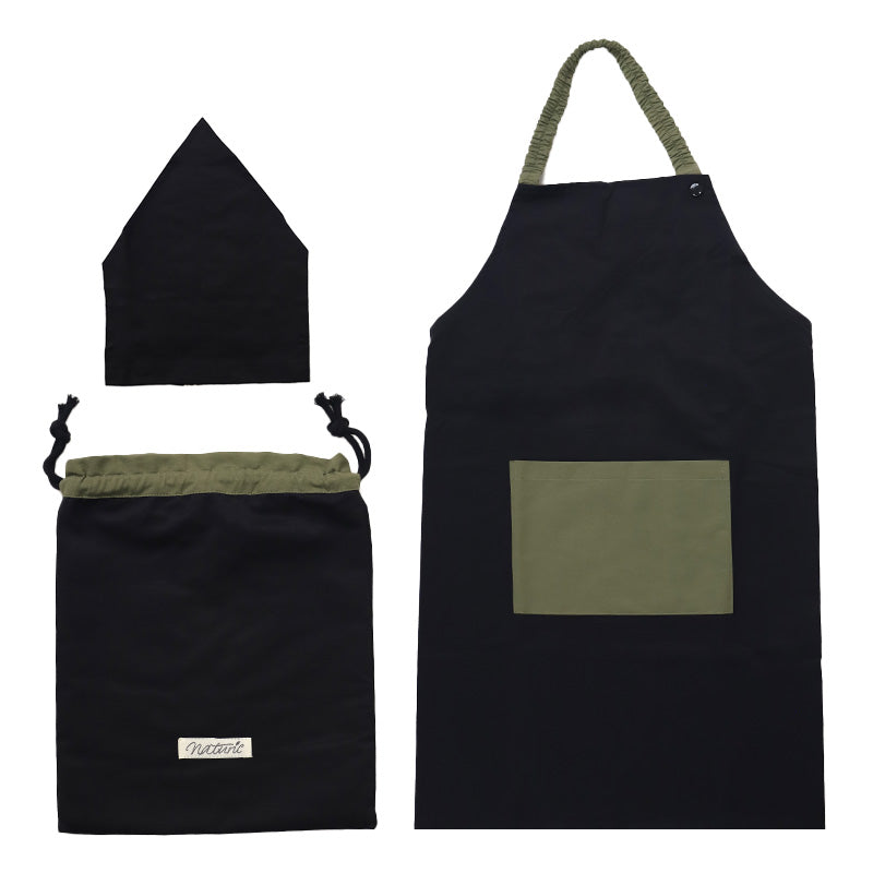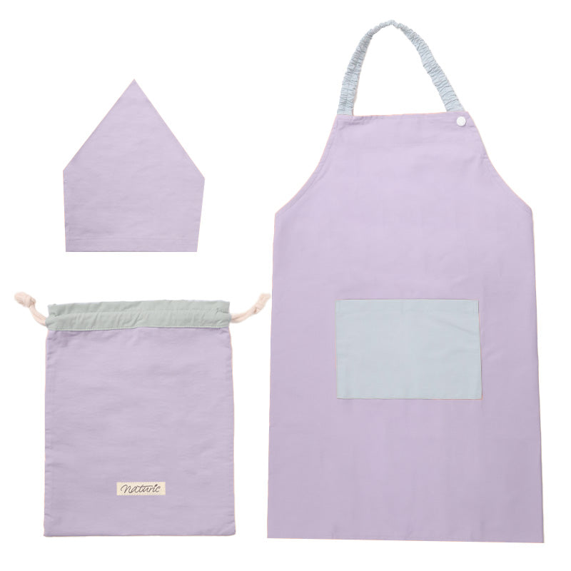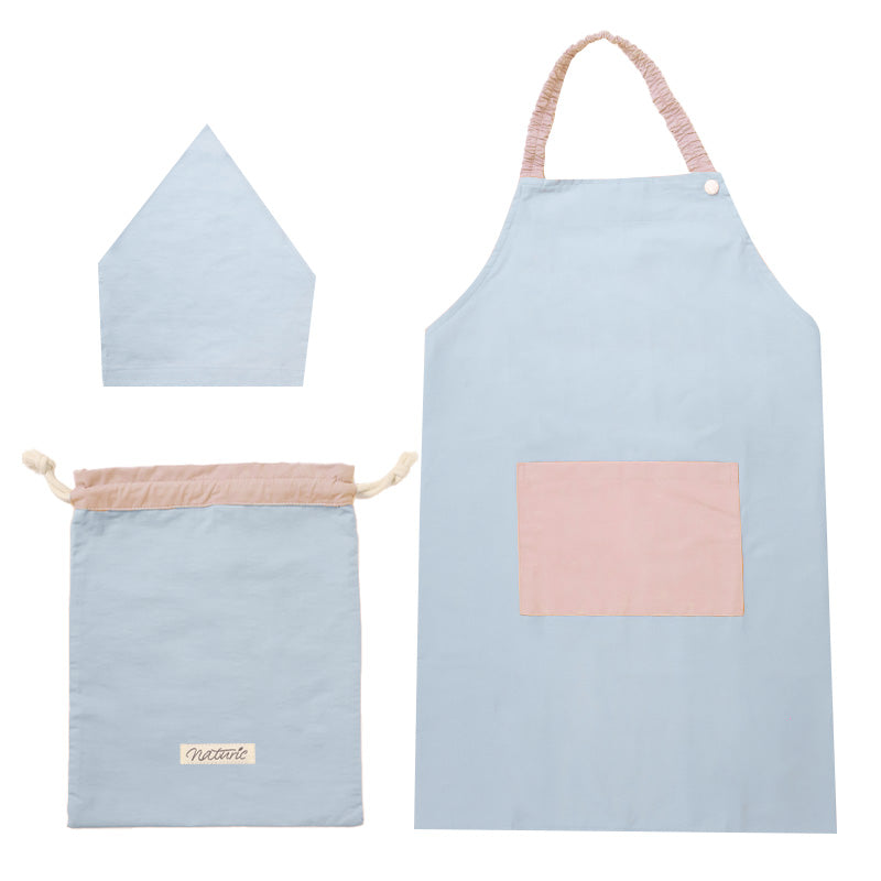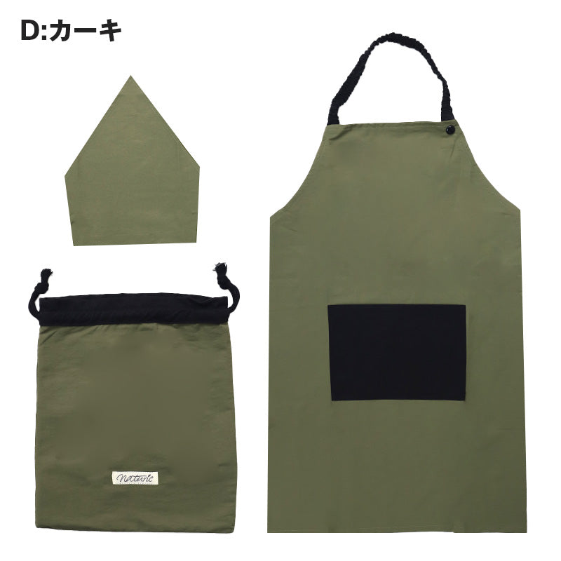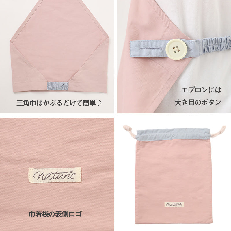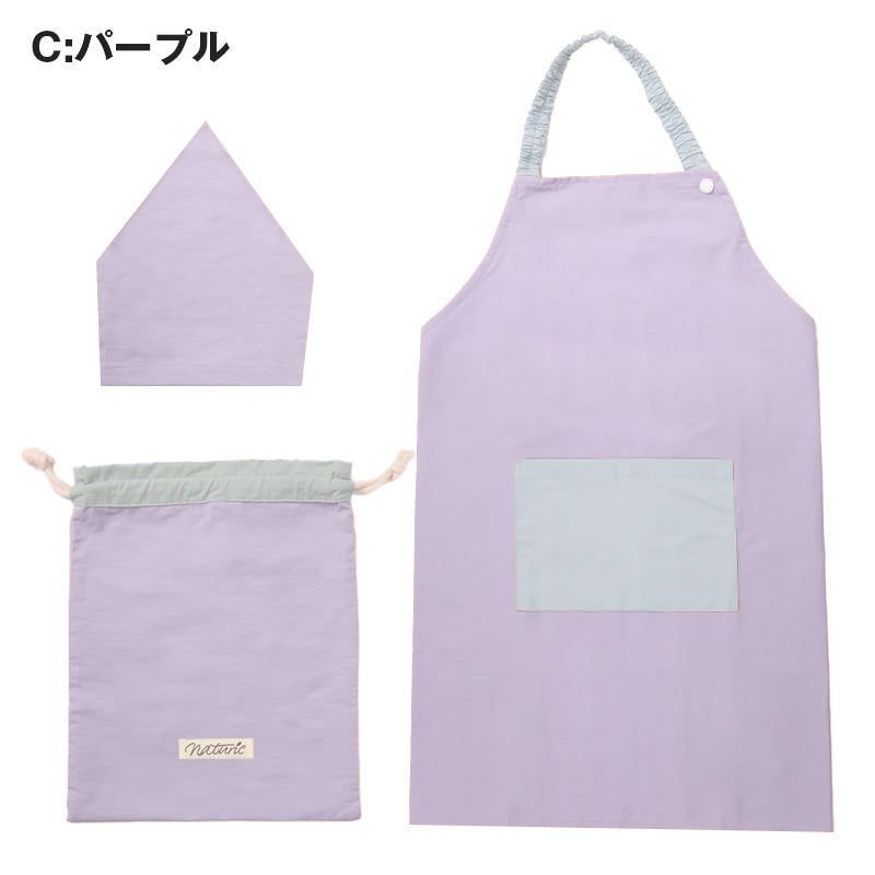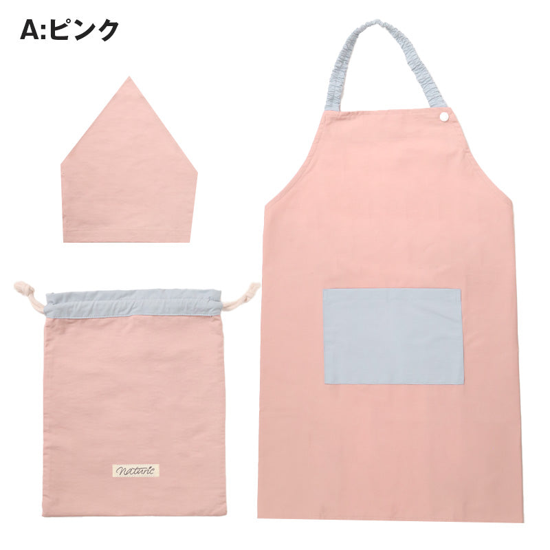 子供用エプロン・三角巾・巾着袋の3点セット。
