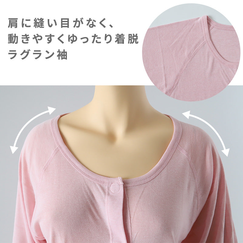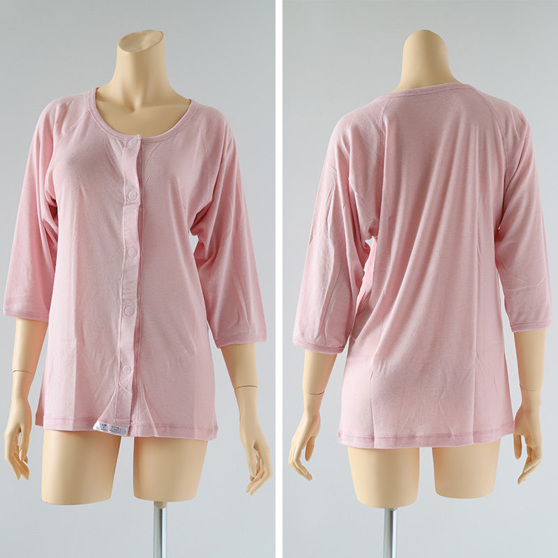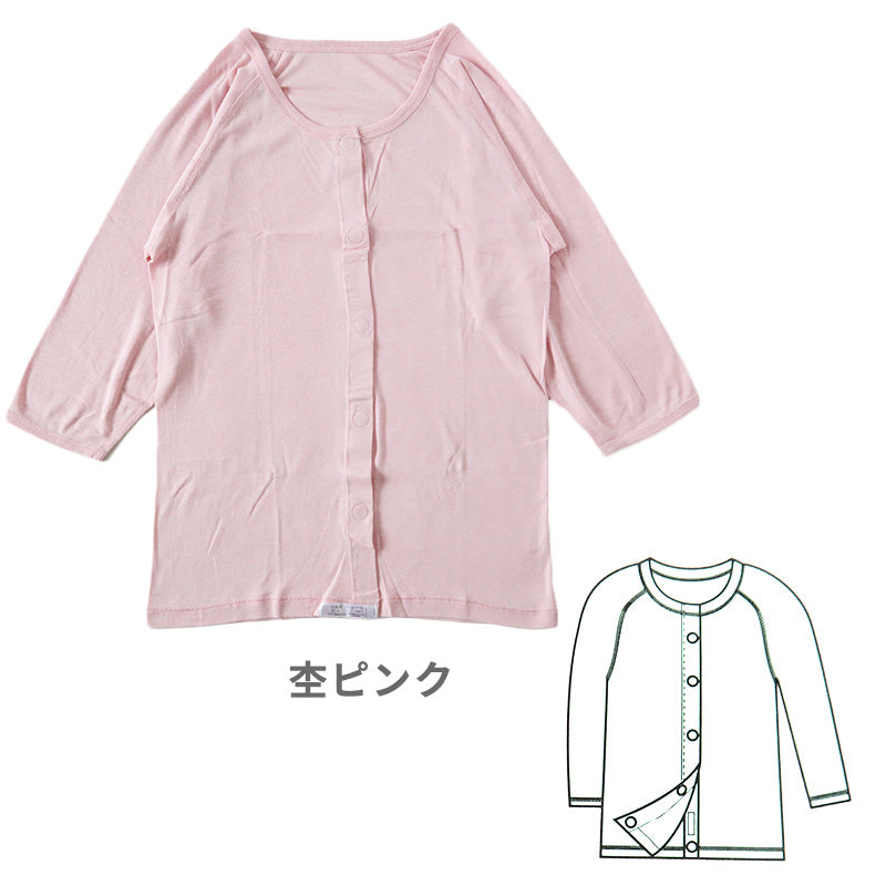 敏感肌の方や体の不自由な方にも優しい、ワンタッチ式前開き肌着(七分袖)