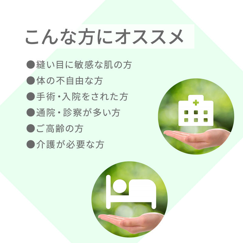 体の不自由な方や、手術・入院をされた方でも、楽に着用することができます。