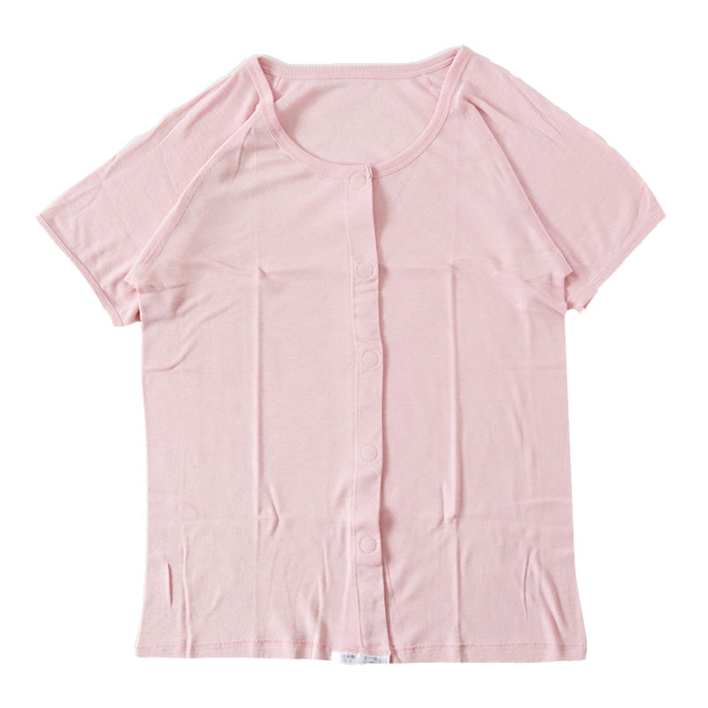 ワンタッチ 介護 肌着 前開き マジックテープ レディース M~LL 7分袖 ラグラン袖 前あき肌着 インナー 院 寝巻き 介護シャツ ピンク m l ll