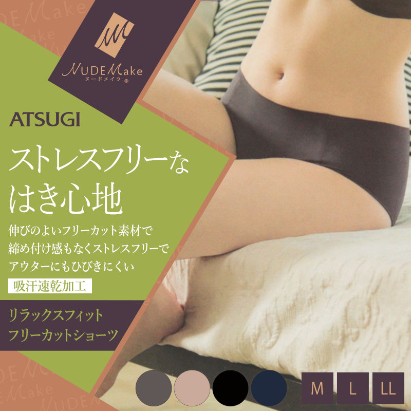 【レディース】/【ショーツ】/【はきこみ普通】/【M】/【L】/【LL】/【ATSUGI[アツギ]】/【NUDE Make[ヌードメイク]】/【グレー系】/【ブラック系】/【ベージュ系】/【ネイビー系】/【通年】/【響きにくい】/【吸汗速乾】/【しめつけない】