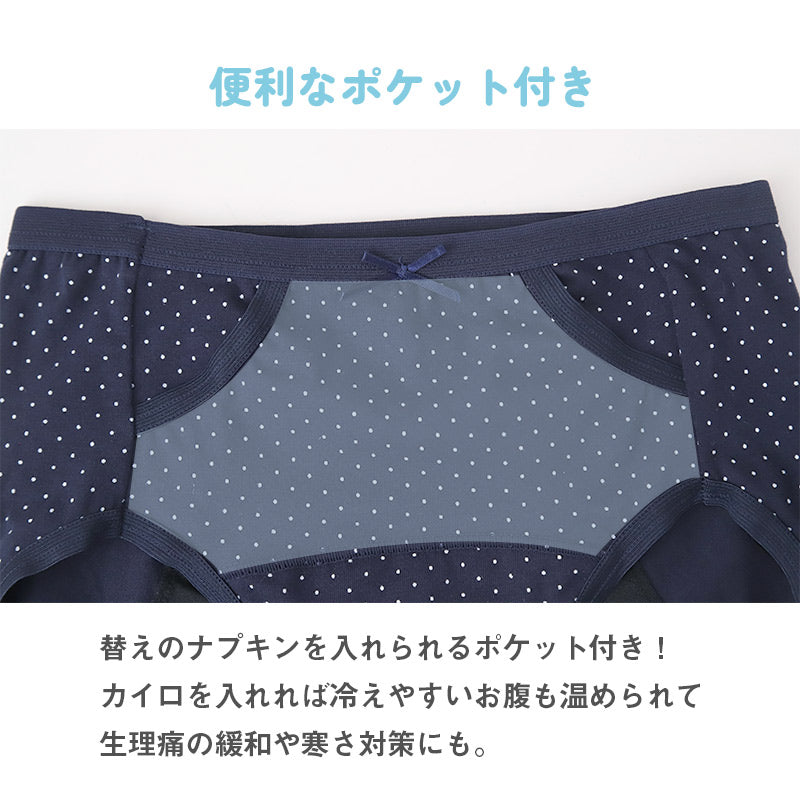 ポケット付きで、カイロや替えのナプキンを入れられて便利!