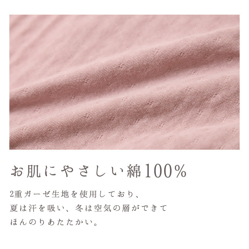 2重ガーゼ生地を使用し、空気の層ができてほんのりあたたかい。