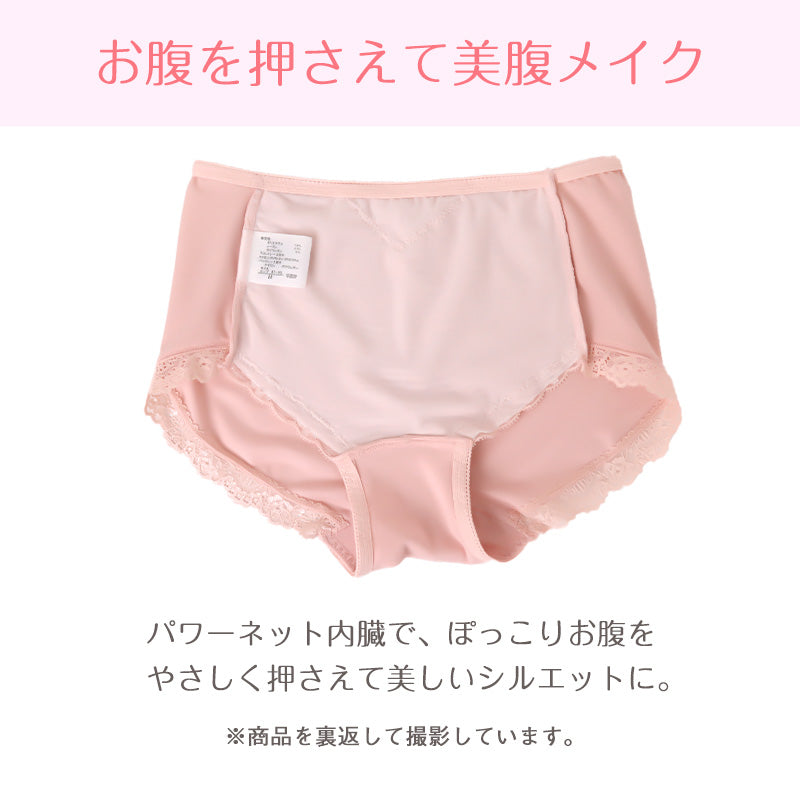 お腹押さえ ショーツ レース M L LL 補正 下着 補整 ショーツガードル お腹 下腹 レディース 女性 インナー たるみ パワーネット 引きしめ 産後 可愛い ストレッチ 吸水速乾 綿マチ付き