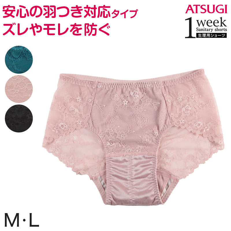 アツギ 1week 普通の日 花柄レース サニタリーショーツ M・L (アツギ サニタリー ショーツ 生理用ショーツ パンティ 綿混) (在庫限り)