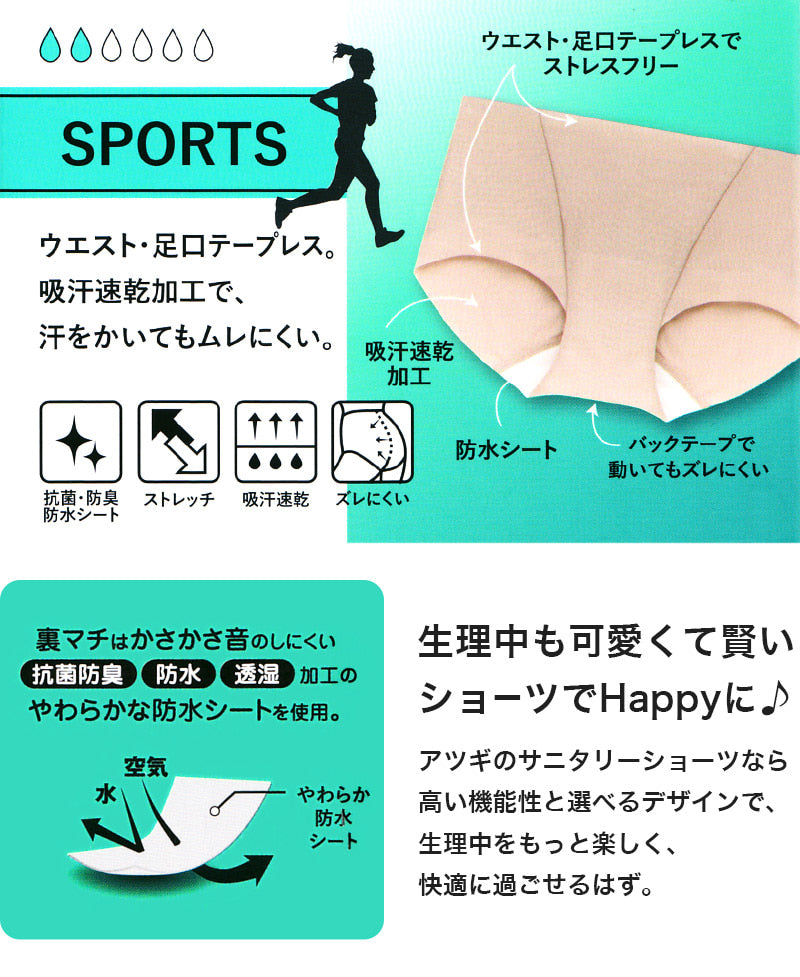 アツギ 1week スポーツ フリーカット サニタリーショーツ M~LL (生理用ショーツ サニタリー 1week フリーカット シームレス 大きいサイズ 肌着 下着 インナー 婦人肌着 吸汗速乾) (在庫限り)
