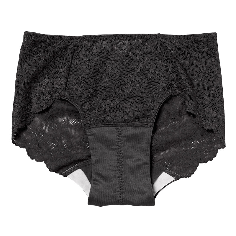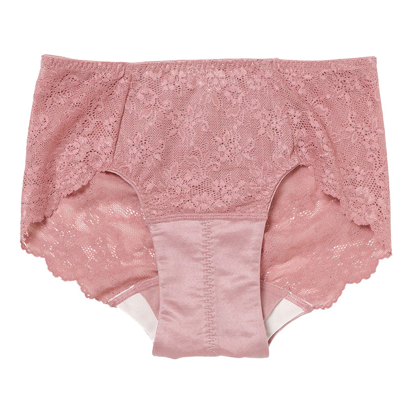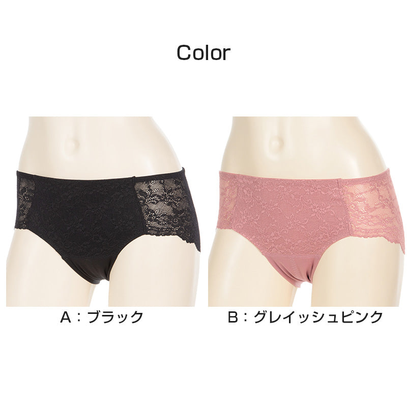 伸びの良いストレッチレースを使用した、大人かわいくて機能的な生理用ショーツです。