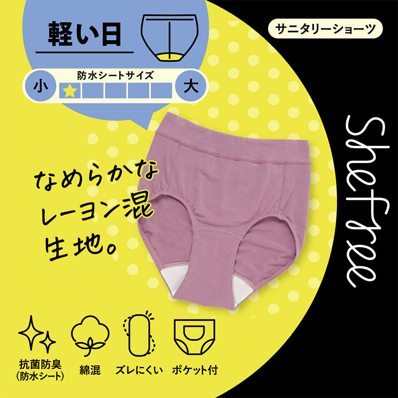 「すべての女性( She )が、サニタリー期であっても自分らしく自由( free )でいられるように」、という願いを込めたブランド。