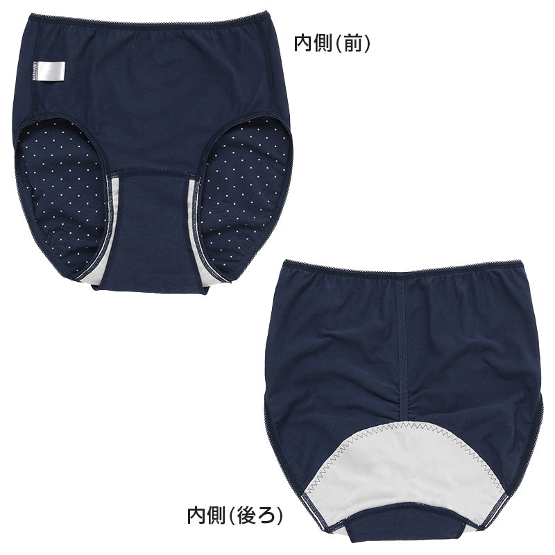 浮きクロッチ(マチ)仕様で羽根つきナプキンに対応しており、マチに折り込んで収納できてナプキンがズレにくいので横モレの心配がありません。