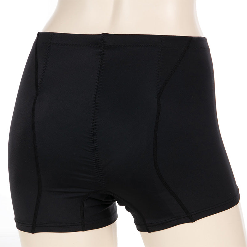 ストレッチ性のあるナイロン生地を立体裁断にすることで、ヒップラインに沿うようフィットしてズレにくい!