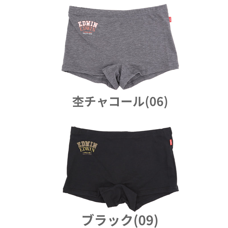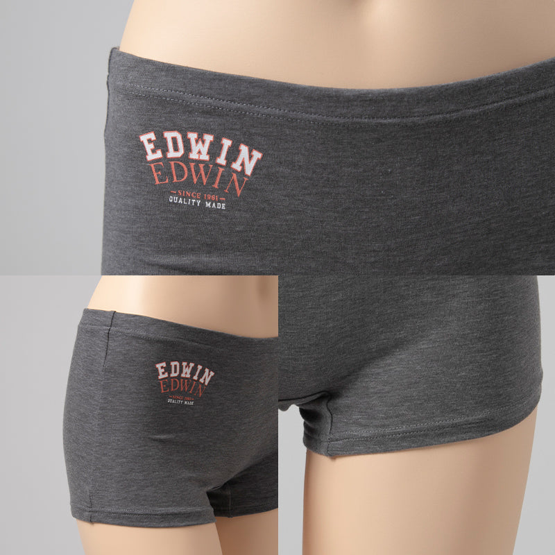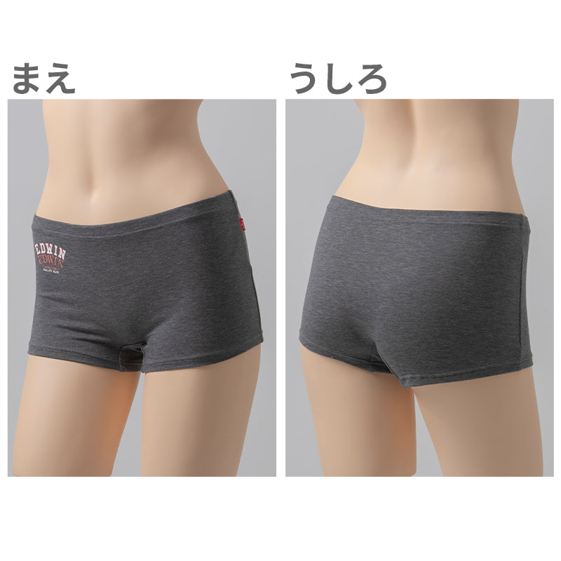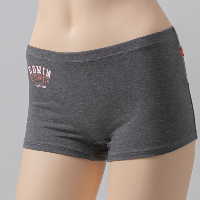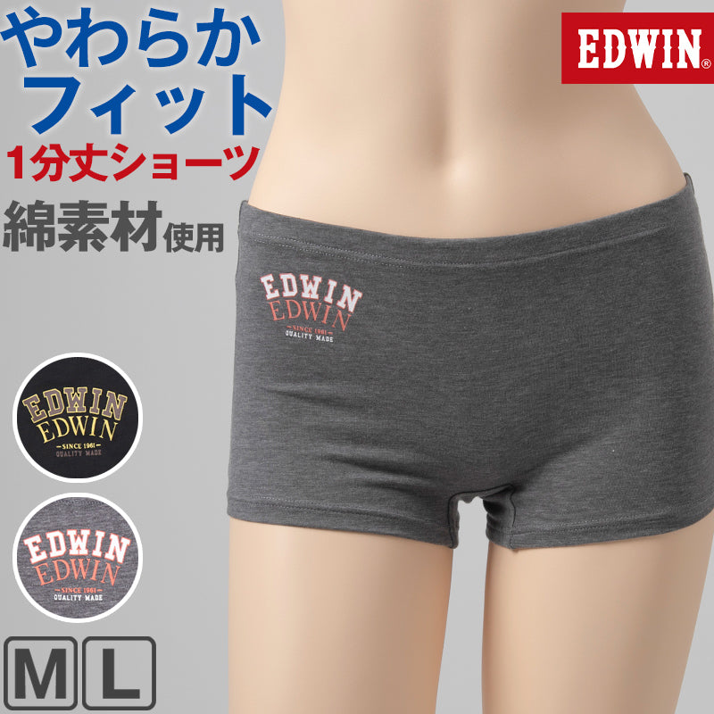 EDWIN レディース ショーツ 1分丈 綿素材 優しい肌触り フィット感 やわらか ストレッチ 動きやすい クロッチあり ロゴ入り 快適 下着 インナー 女子 黒 グレー チャコール M L M・L