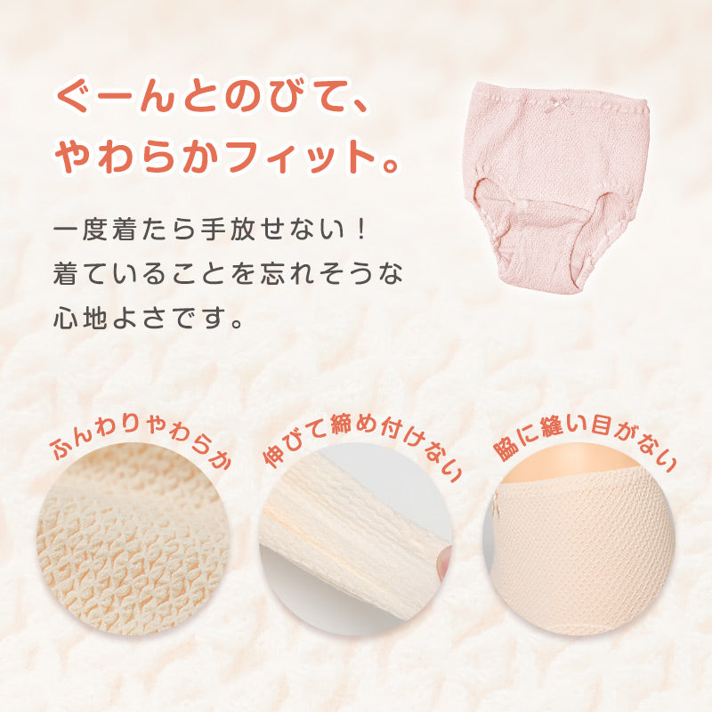 裏側身生地:綿100%/脇に縫い目がない/ゴム入れ替え可