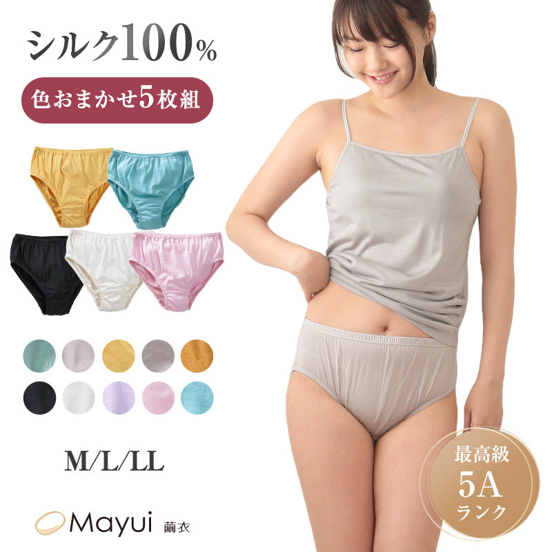 シルク ショーツ 5枚組 レディース パンツ スタンダード丈 色おまかせ M L LL