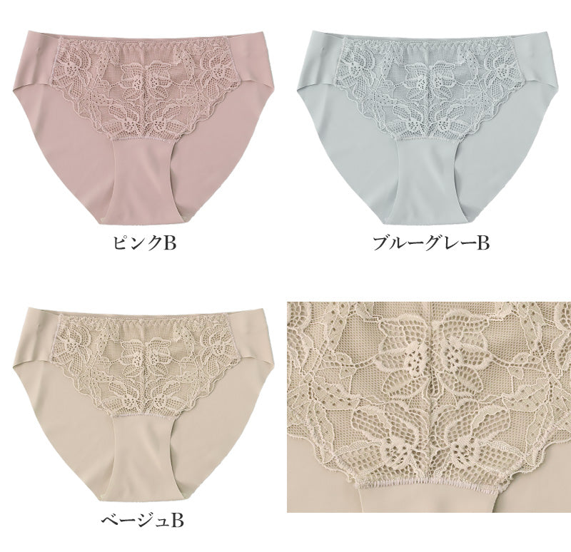 シームレスショーツ シームレス フロントレース ペアショーツ レース M~LL