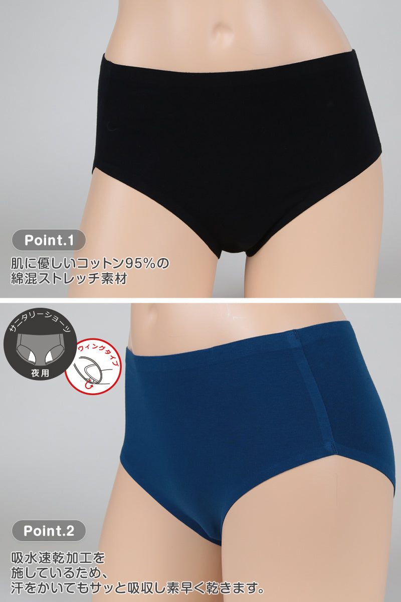 【レディース】/【ショーツ】/【はきこみ普通】/【シームレス】/【サニタリーショーツ】/【M】/【L】/【LL】/【ブラック系】/【ネイビー系】/【ブルー系】/【通年】/【吸汗速乾】