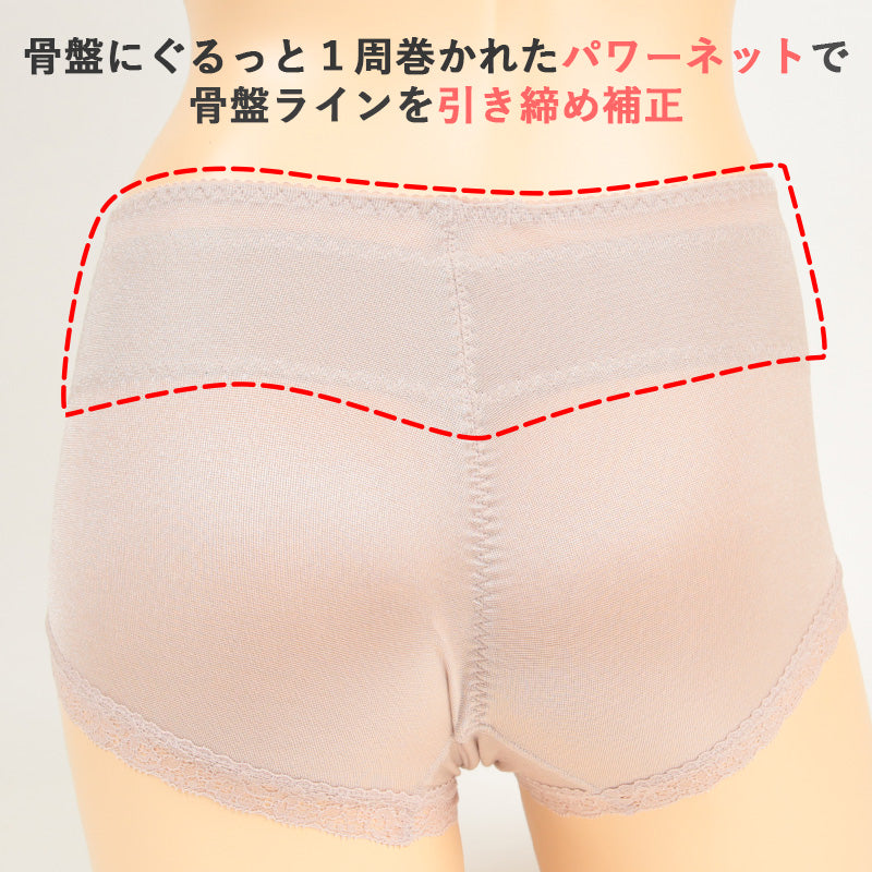 パワーネットで骨盤、お腹をしっかりサポート。骨盤サポートガードルショーツです。
