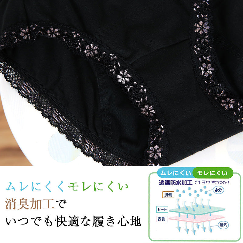 【レディース】/【ショーツ】/【サニタリーショーツ】/【M】/【L】/【LL】/【ブラック系】/【通年】/【吸汗速乾】/【消臭加工】
