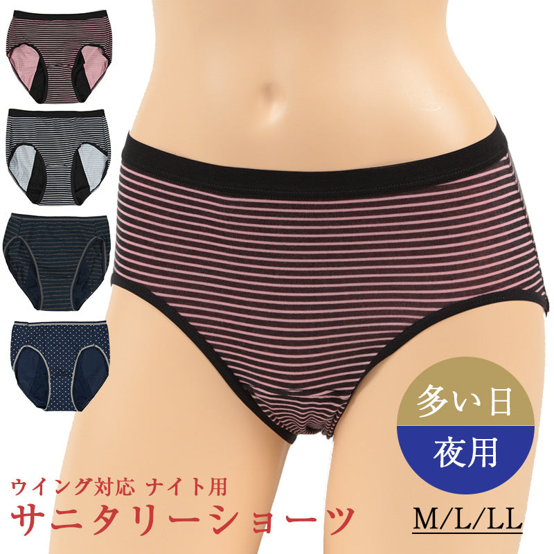 サニタリーショーツ 夜用 羽根つき 綿 M~LL