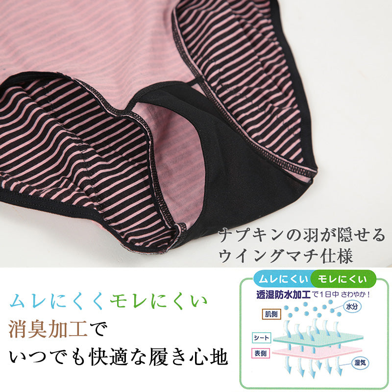 【レディース】/【ショーツ】/【サニタリーショーツ】/【M】/【L】/【LL】/【ブラック系】/【ピンク系】/【ネイビー系】/【ブルー系】/【通年】/【吸汗速乾】/【消臭加工】