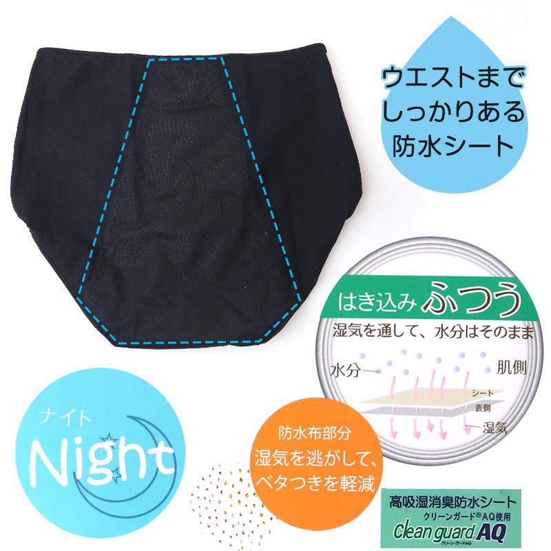ウエストまでしっかり防水シートがあるので、モレが心配な多い日の夜も安心です。