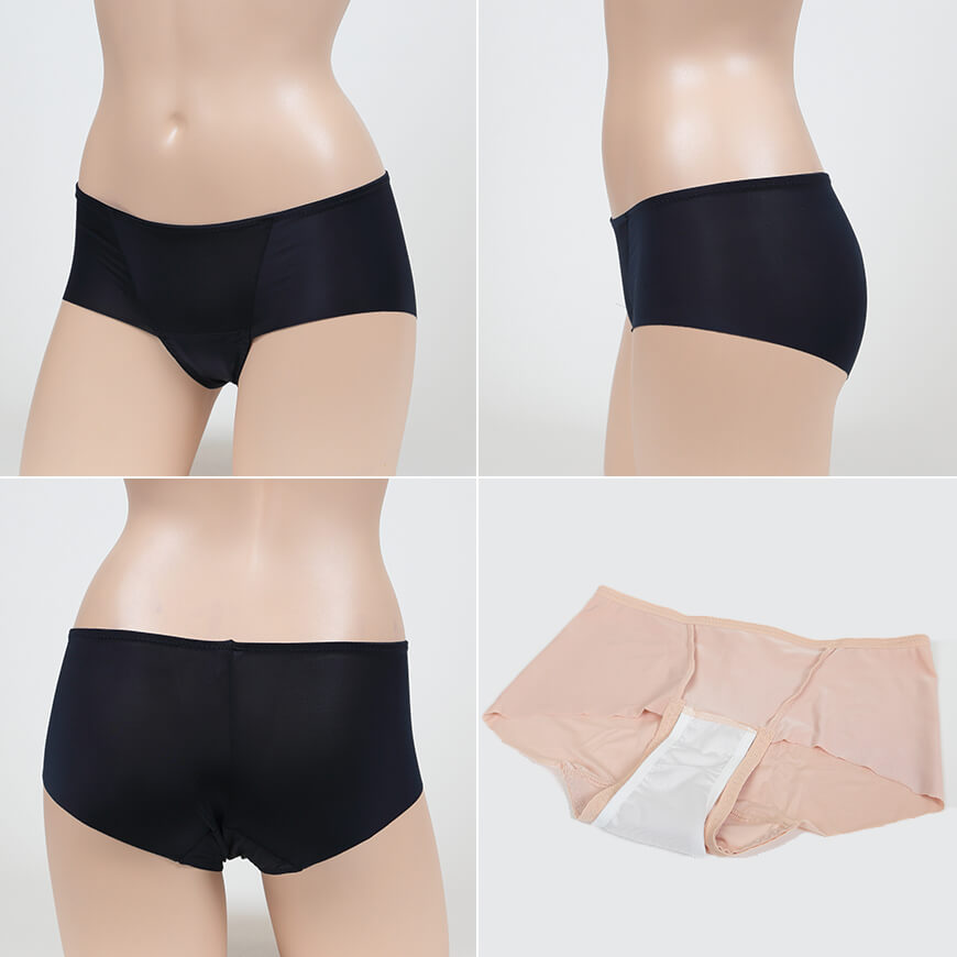 ぴったり身体にフィットする薄手の生理用パンツ。ごわつきにくく、ひびきにくいインナーです。