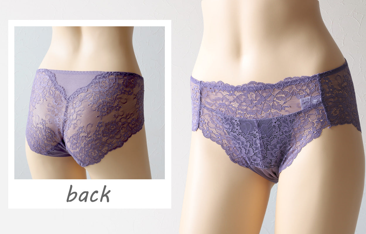 華やかなレースをあしらい、大人っぽいセクシーな透け感。
