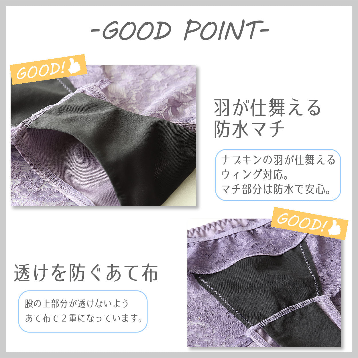 サニタリーショーツ 総レース 羽根つき レディース 生理用ショーツ M~LL