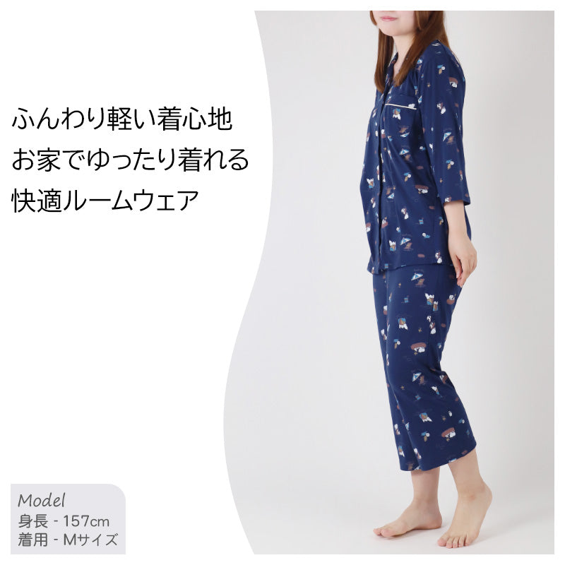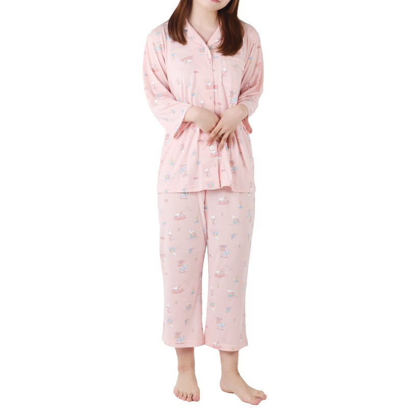 7分袖と7分丈パンツのセットアップで、全身スヌーピーに包まれる至福のひとときを。