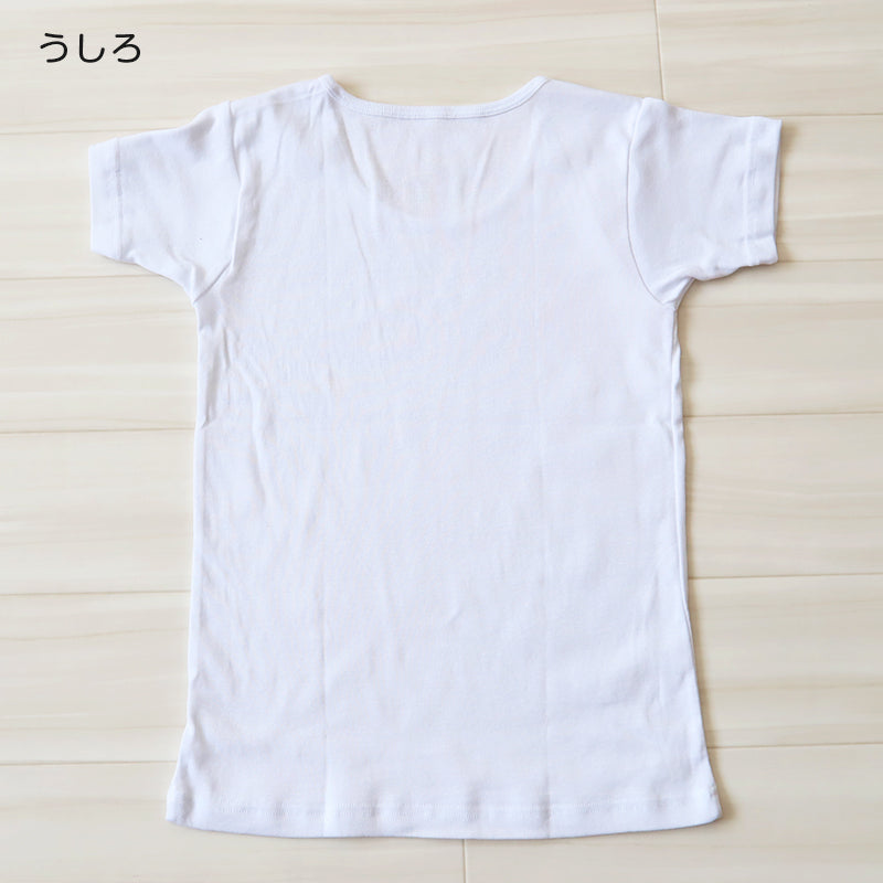 襟が広めに開いているのでお着替えも簡単にでき、スクールインナーとしてもおすすめ。