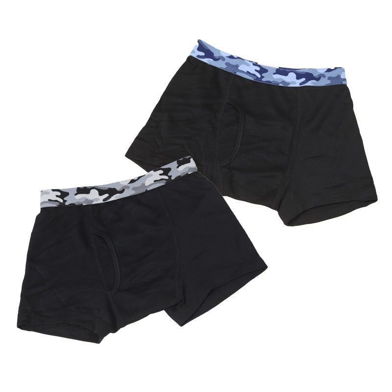 ベーシックなボーイズ(男児)用綿混ボクサーブリーフ2枚組(前あきタイプ)になります。