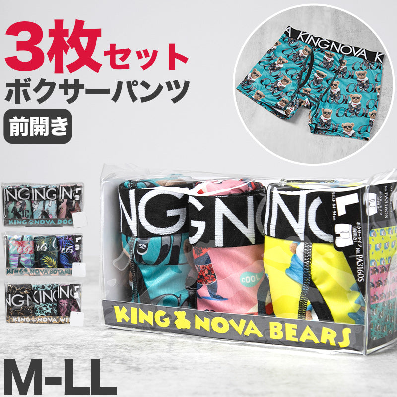 ボクサーパンツ 3枚組 メンズ 前開き セット ボクサーブリーフ インナー まとめ買い 柄もの イラスト 派手 M L LL M~LL