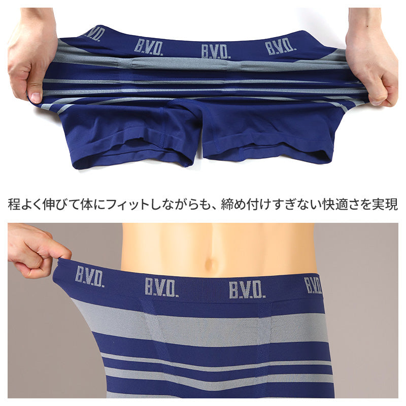 BVD ボクサーパンツ メンズ 前閉じ ボーダー M L LL 下着 アンダーウェア ボクサーブリーフ ソフトフィット サラッと 快適 通気性 吸汗 伸縮性 やわらかい 履きやすい シンプル 無地 おしゃれ デイリー立体成型 締め付けない 蒸れにくい プレゼント ギフト 父の日 誕生日