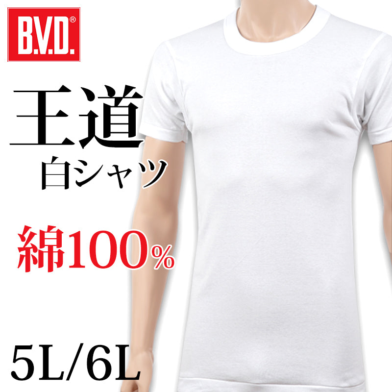 BVD メンズ tシャツ 半袖 クルーネック 綿100% 5L・6L