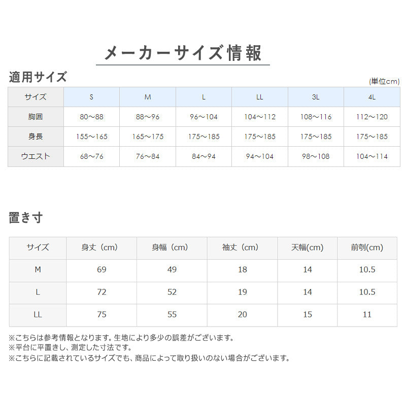 LL (身長:175-185cm/胸囲:104-112cm/胴囲:94-104cm)
