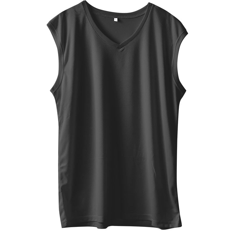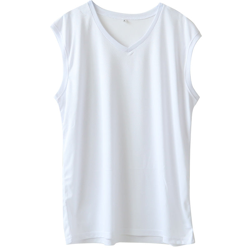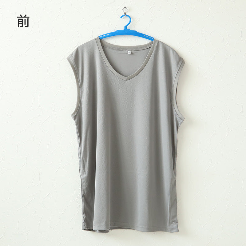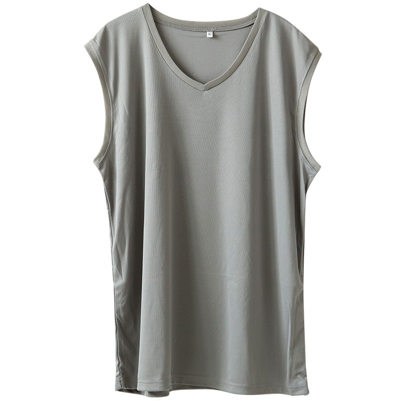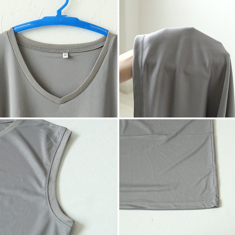 メッシュ生地で通気性抜群のメンズスリーブレスV首インナー。