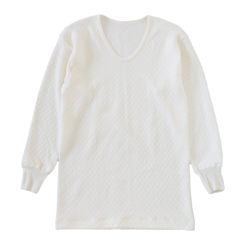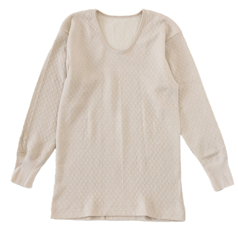 寒い冬も、この一枚でぬくもりを。「毛混ニットキルト 長袖U首 日本製」