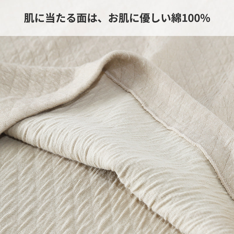3重構造のニットキルトが、まるでコタツに入ったようなあたたかさを実現。