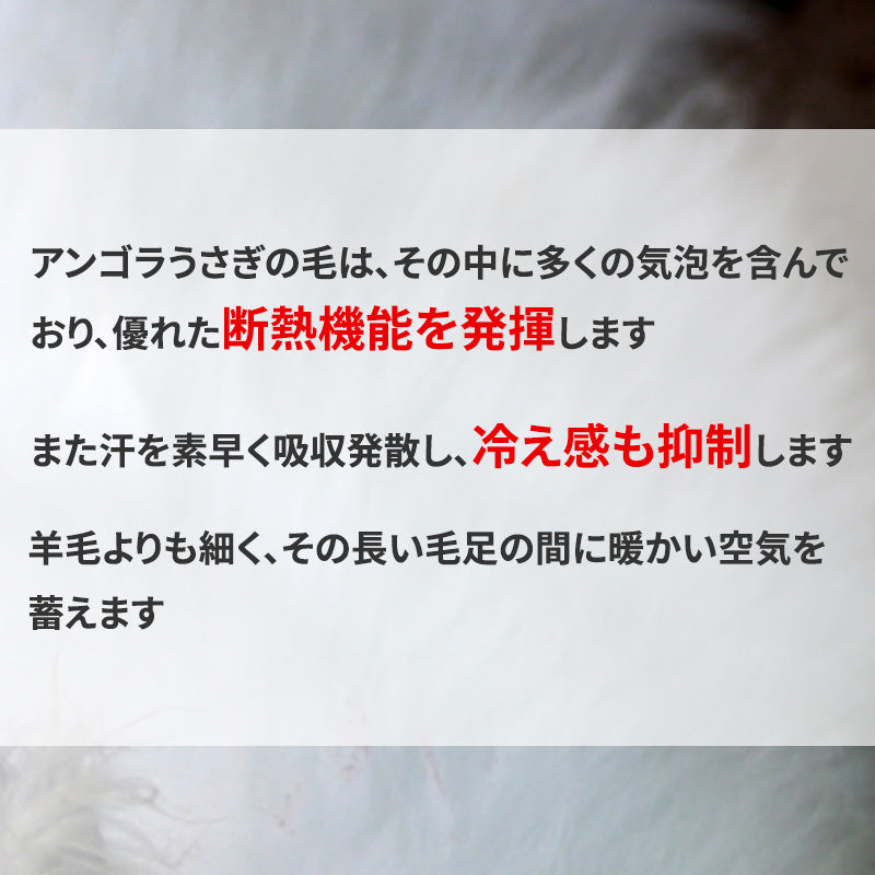 アンゴラ特有の長い毛足がたっぷりと暖かい空気を抱き込み、まるで雲に包まれているような心地よさを提供します。