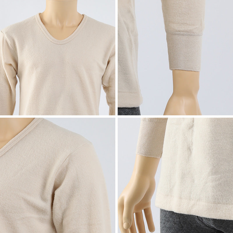 シニア 肌着 メンズ U首 長袖 アンゴラ混 起毛 M~LL