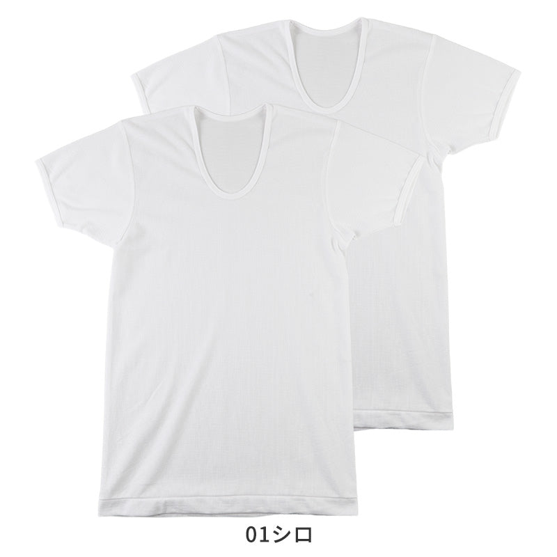 サラッと快適、吸汗速乾。カノコ編み半袖U首2枚組です。