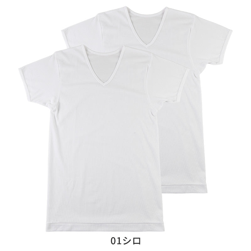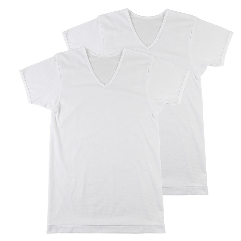 サラッと快適、吸汗速乾。カノコ編み半袖V首2枚組です。