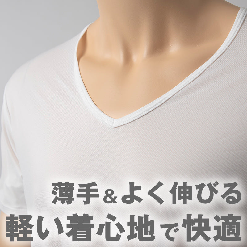メンズ インナー Tシャツ 半袖 Vネック 汗対策 汗取り付き 涼しい 冷感 薄い 夏 吸汗速乾 ムレない ストレッチ 伸びる 伸縮性 汗染み防止 下着 肌着 汗で蒸れにくい 脇部分2重 汗シート 白 黒 M L LL M~LL