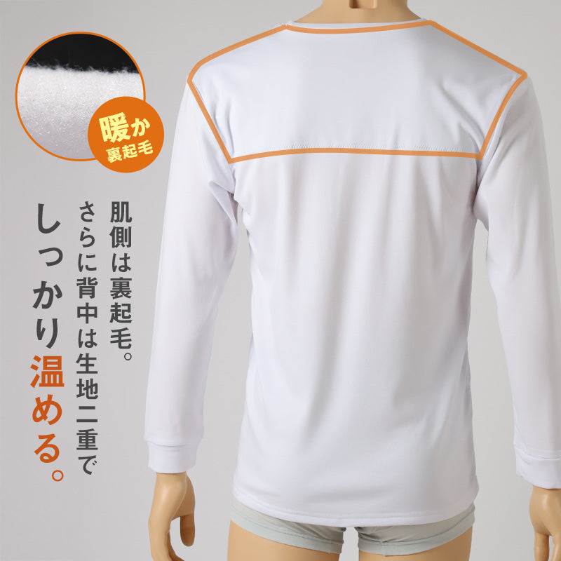 ホカロン 裏起毛 メンズ 長袖 シャツ 保温 あったかインナー 丸首 M L LL 背中あて付き 男性 紳士 シャツ 肌着 防寒 インナー 大きいサイズ 秋冬 温活 ストレッチ ぽかぽか 温かい