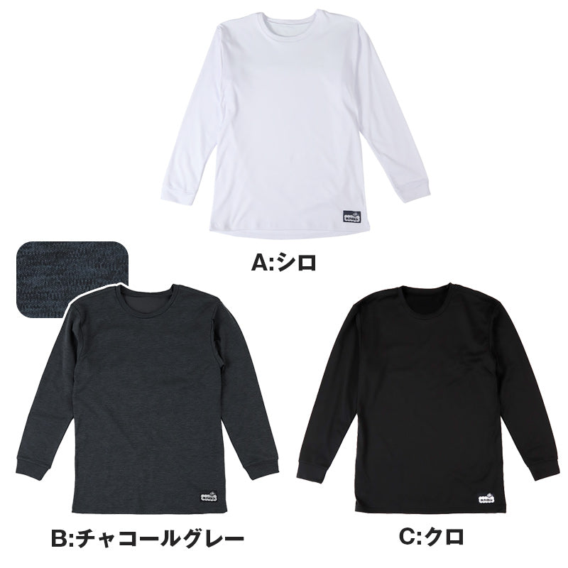 ホカロン 裏起毛 メンズ 長袖 シャツ 保温 あったかインナー 丸首 M L LL