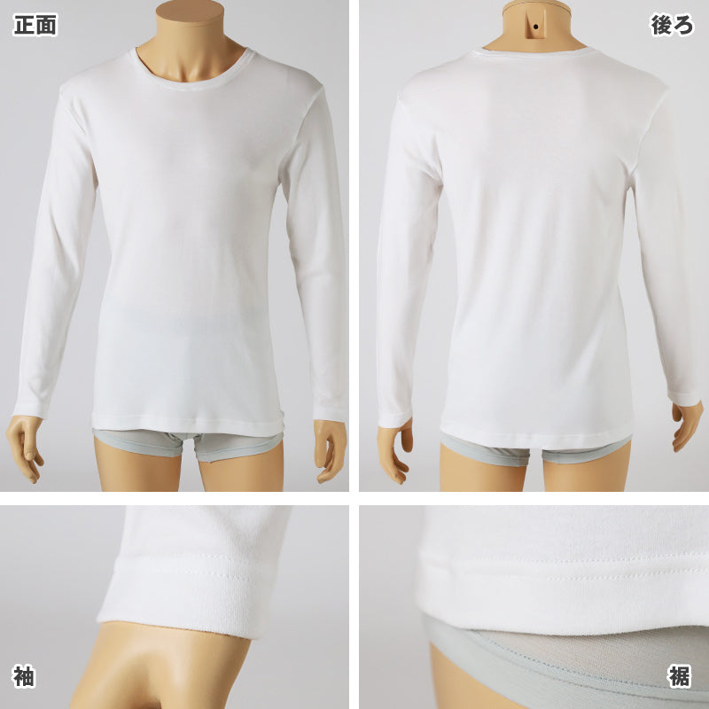 綿100% 長袖 シャツ 秋冬 保温 メンズ あったかインナー 丸首 M L LL