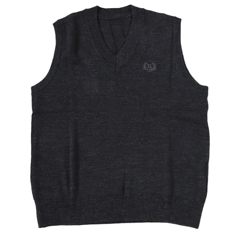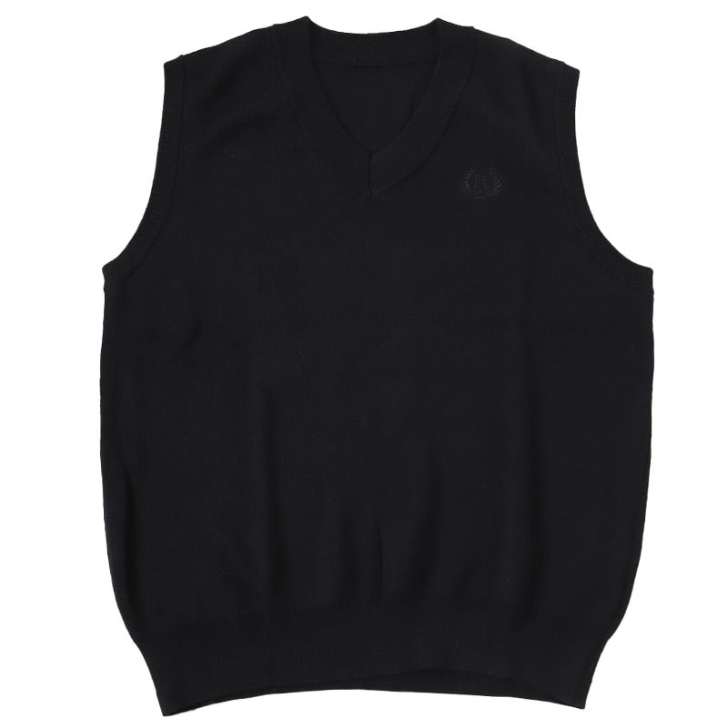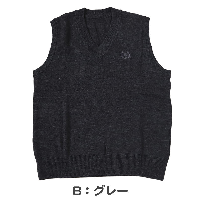 スクールベスト 女子 薄手 春 秋 冬 学生 ニット 制服 ベスト vネック 中学生 140 150 160 紺 黒 グレー 毛混 ワンポイント 刺繍 かわいい 通学 学校 ノースリーブ セーター