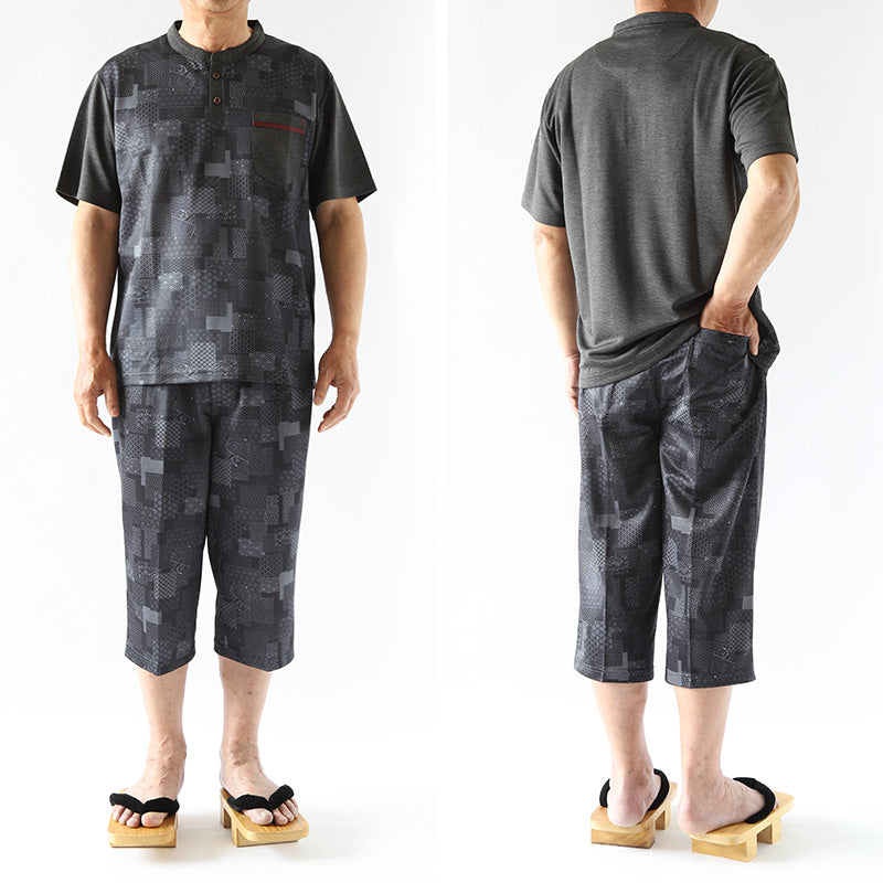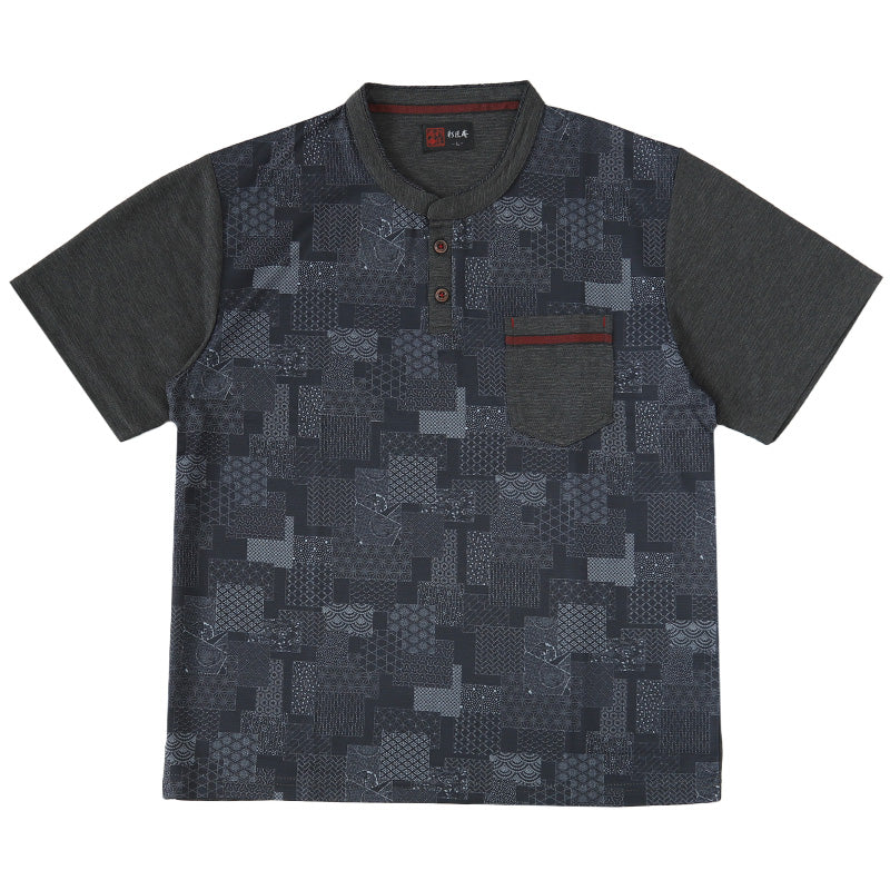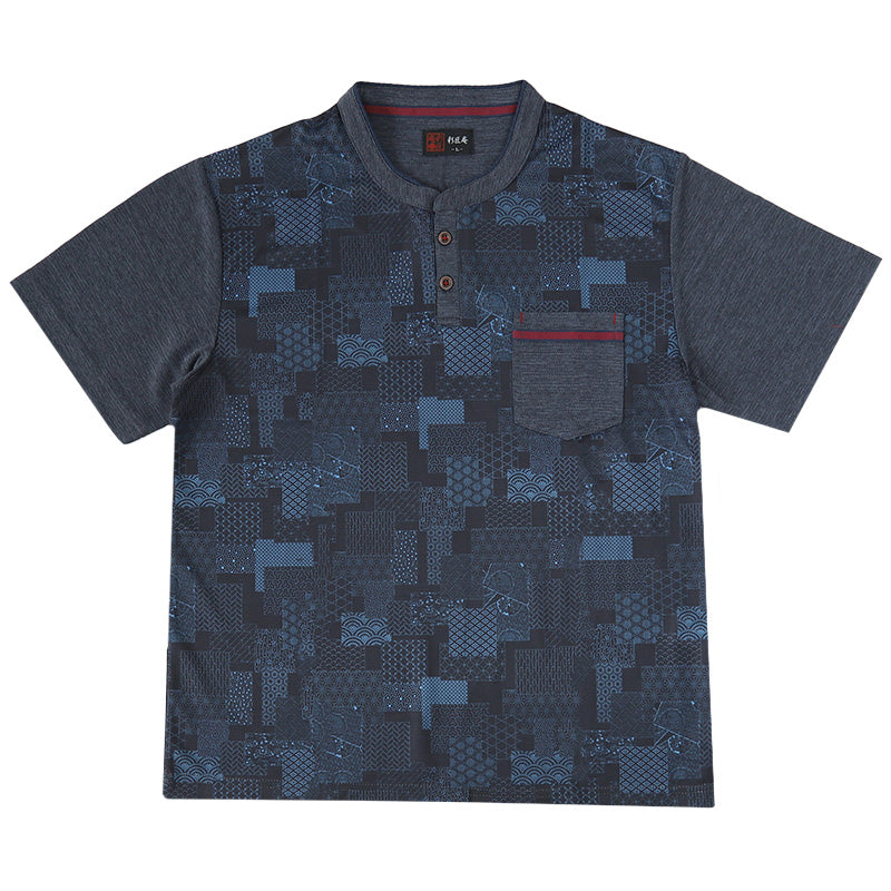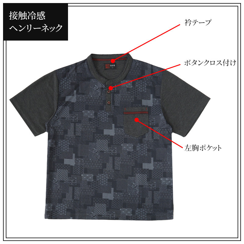 接触冷感 メンズ 半袖 ヘンリーネック 和柄 メンズ 夏 大きいサイズ 和風 M~4L
