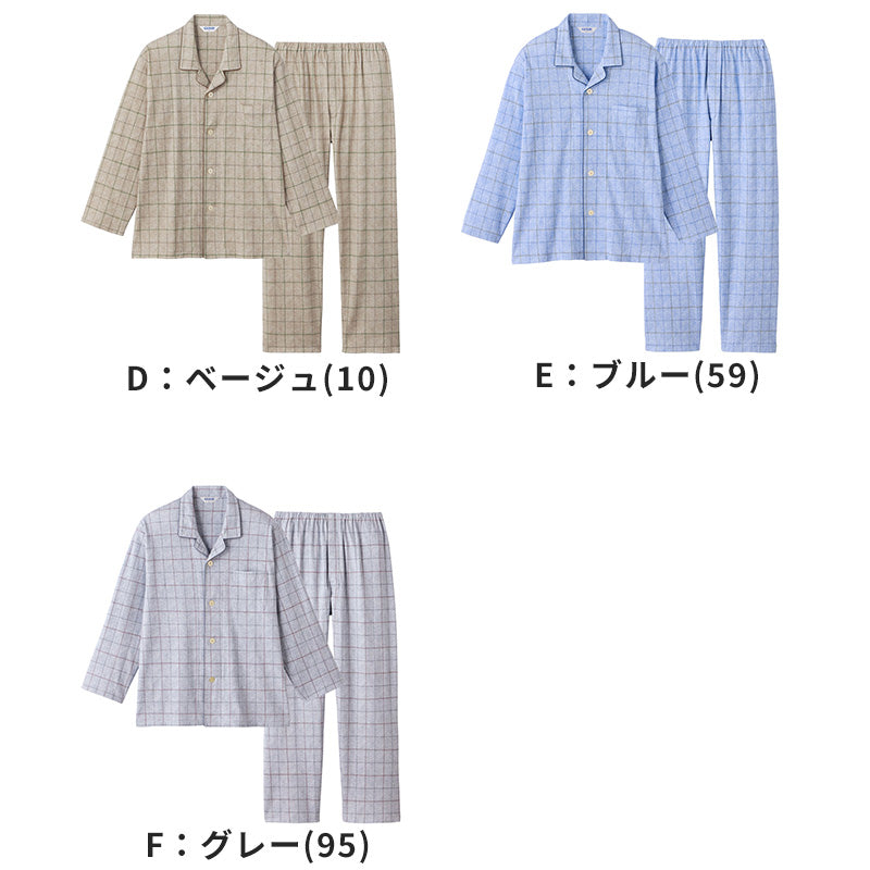 ・ブルーやグレーなど、流行りすたりのないカラーで長く愛用できる寝巻です。